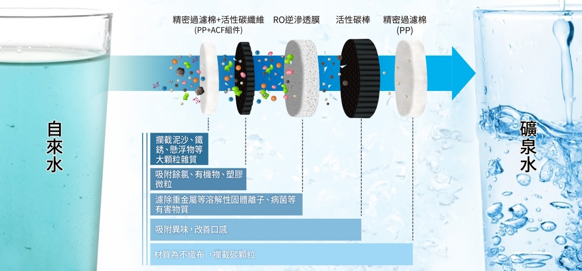 ● RO五重高效過濾,濾除鉛、多種有害物質、細菌